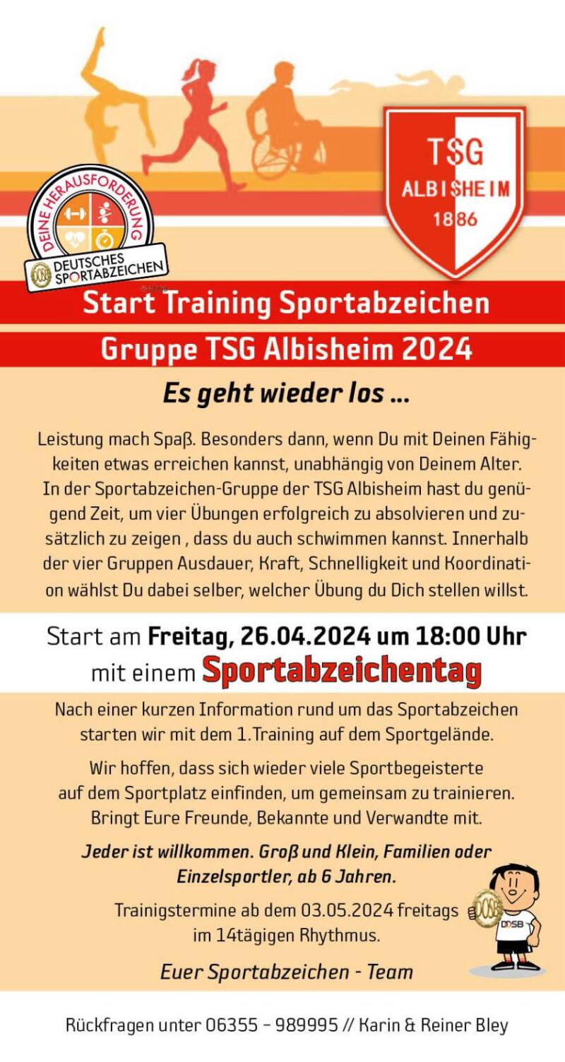 Am Sonntag, den 08. Januar startete die TSG 1886 Albisheim e.V. mit ihrem traditionellen Neujahrsempfang in das Jahr 2023. Der 1. Vorsitzende Dirk Drexler-Erlenbach begrüßte um 10.30 Uhr die zahlreich erschienen Mitglieder im voll besetzten Sportheim und wünschte, ebenso wie auch Ortsbürgermeister Ronald Zelt, allen Besuchern ein frohes und gesundes neues Jahr. Wenngleich das zurückliegende Jahr 2022 ein mühsames war, so konnten doch alle Abteilungen und Gruppen wieder einen regelmäßigen Übungs- und Trainingsbeginn aufnehmen. Besonders erfreulich ist, dass endlich auch wieder ein Angebot im Bereich des Kinderturnens gemacht werden kann. Das 40-jährige Bestehen der Damen-Turnabteilung, sowie die stattgefundenen Veranstaltungen von Haupt- und Förderverein wie die Sportwoche, Maifeier oder die Beteiligungen am Albisheimer Markt waren einige Highlights, auf die sich die derzeit 600 Mitglieder freuen konnten. Die am 17.-19.02.2023 wieder stattfindenden Kappensitzungen der TSG- und TTC-Fastnachter bereiten bereits jetzt bei Vielen eine Vorfreude der besonderen Art. Zum Abschluss der kurzweiligen Veranstaltung wartete noch die offizielle Verleihung des Deutschen Sportabzeichens durch Vereinsvertreter Reiner Bley. Mit 26 Abzeichen stellte die Abteilung erneut ihr Können unter Beweis.